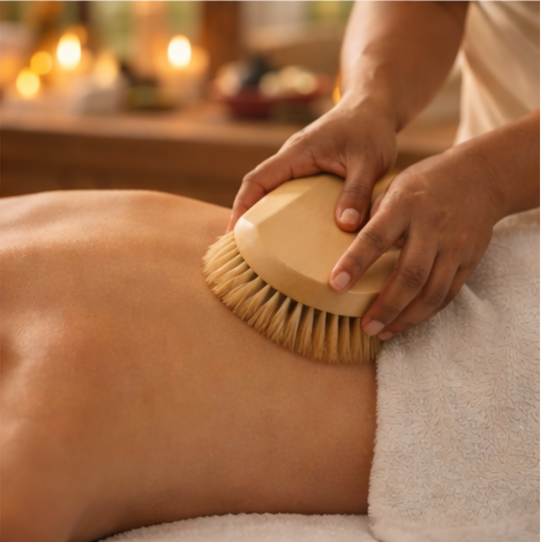 This revitalizing technique gently brushes the skin in rhythmic strokes, encouraging lymphatic drainage and boosting circulation. It’s the perfect reset for those feeling sluggish, bloated, or weighed down. Dry brushing supports detox, smooths skin texture, and invites a sense of lightness—inside and out.